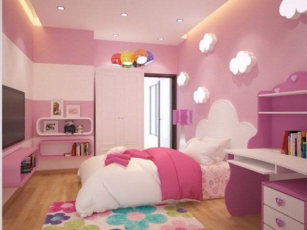 9. Trang trí phòng ngủ bé gái màu hồng với cách bố trí đơn giản