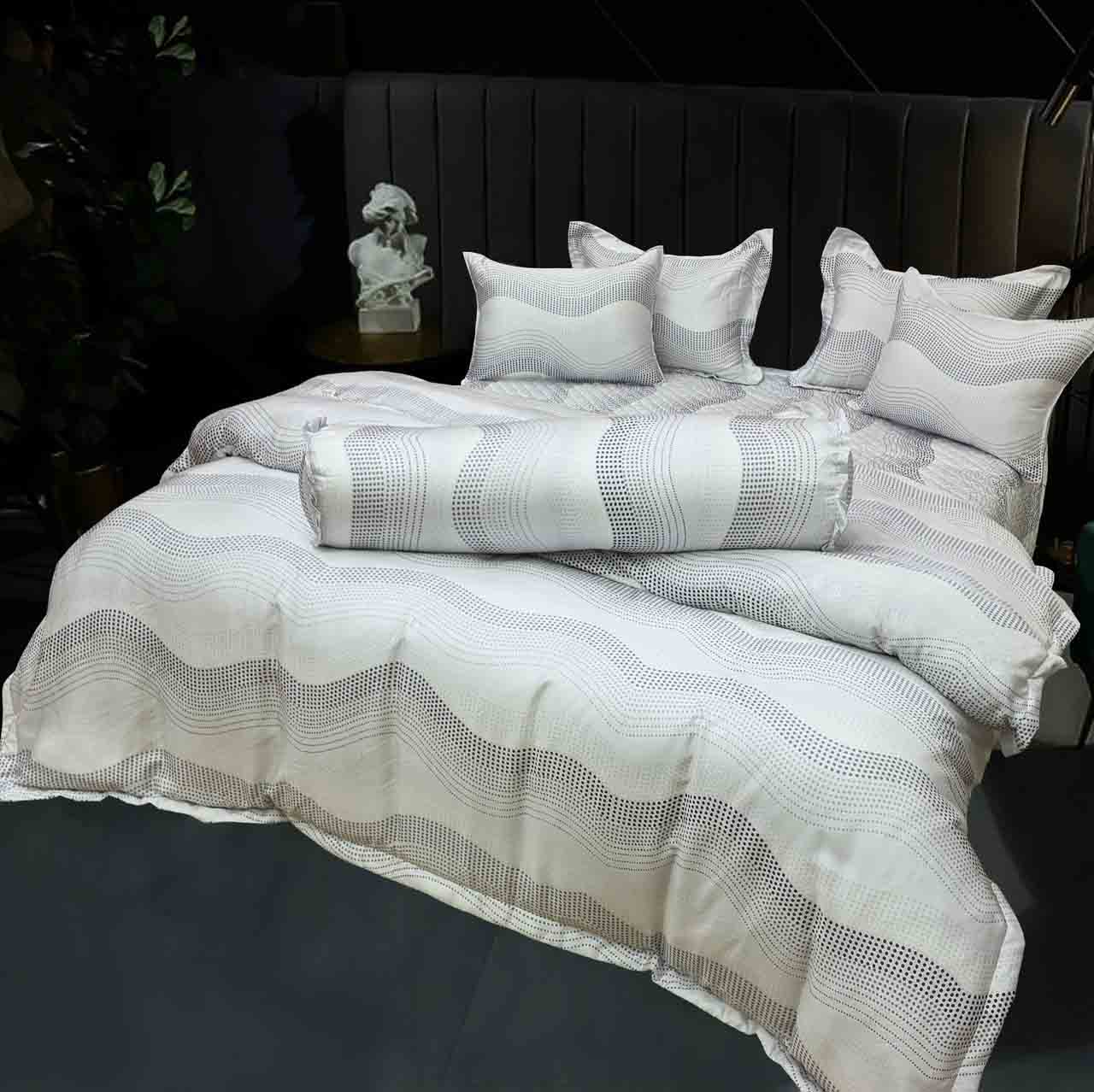 Bộ chăn ga gối 100% Tencel được xem như một dòng sản phẩm cao cấp, chất lượng và được nhiều gia đình ưa chuộng sử dụng. Đối với việc trang trí cho nội thất không gian phòng ngủ không chỉ đạt tiêu chuẩn về thẩm mỹ mà còn đảm bảo an toàn về sức khỏe cho người sử dụng. Hoàn toàn không có bụi lông, mùi khó chịu, an toàn cho hệ hô hấp.
